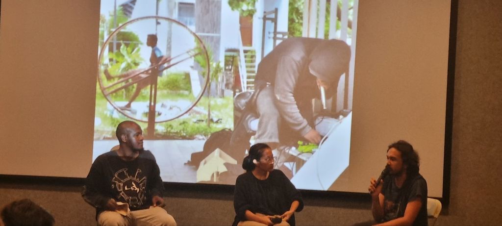 Krack Gallery is a collective printing gallery and work space. It has functioned in the location for over ten years and is the venue fit the evenings’ event. First up is a session of local experimental films. One explores a Nietzschian idea from a local perspective. The second is an animation of old photos referencing some historic event. The third is an Indonesian experience of CoVID, reflecting on the fears, struggles, and misinformation of that time.