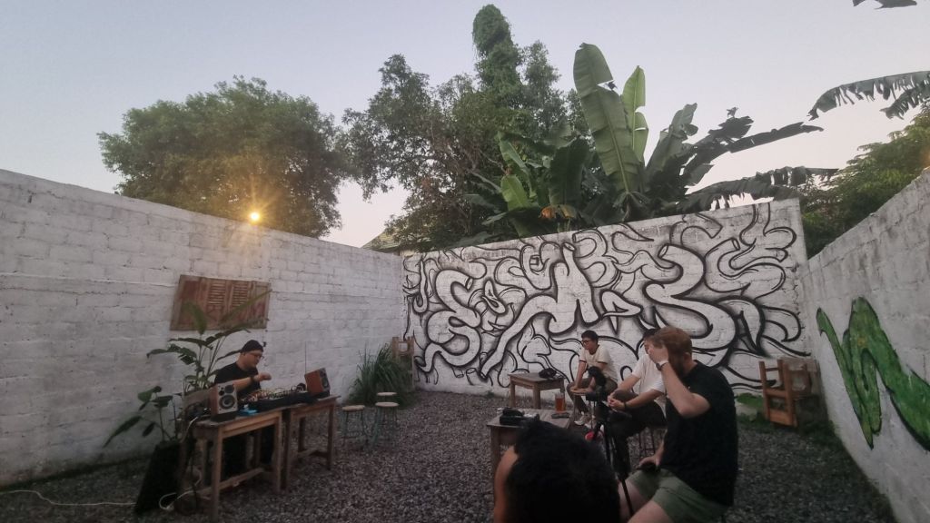 In the afternoon I’m joined by visual and sound artist and guitarist Gemma Thompson. Gemma is also a regular inhabitant of Toi Pōneke. We have only recently met. We have chatted a couple of times in the kitchen, and have never heard of each others’ music, other than a short clip she played to me from her phone of a recent concert. It is an interesting way to meet someone through sound rather than words. There is a confidence required to be able to let go in the company of a stranger, the urge to self-censor, and self-limit can hobble opportunities like these. It’s a good practice to work against these things.
